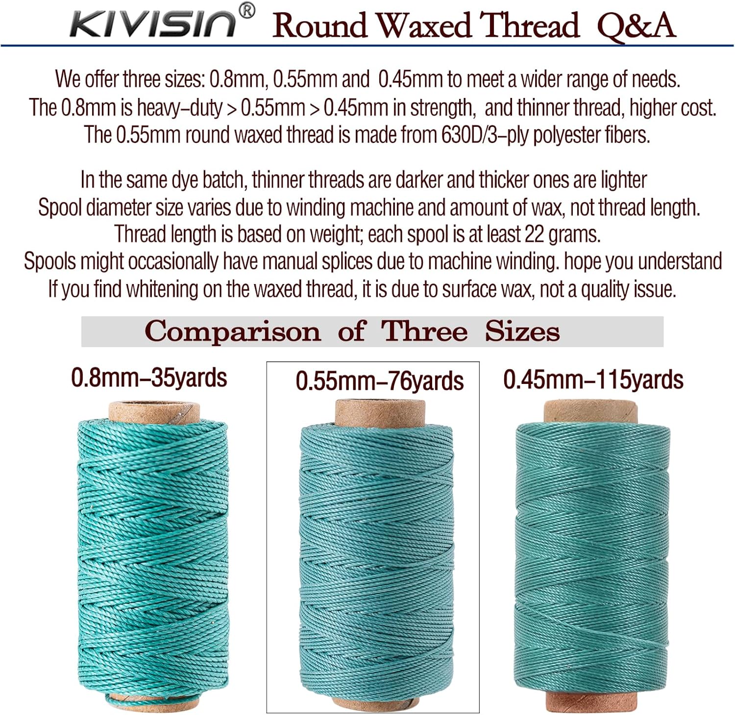 - Performance - This round wax thread is durable, waterproof, stiff, and smooth to the touch. It has a slight tackiness and is non-elastic. It will not shrink, unravel, or fuzz, and will maintain its original shape over time