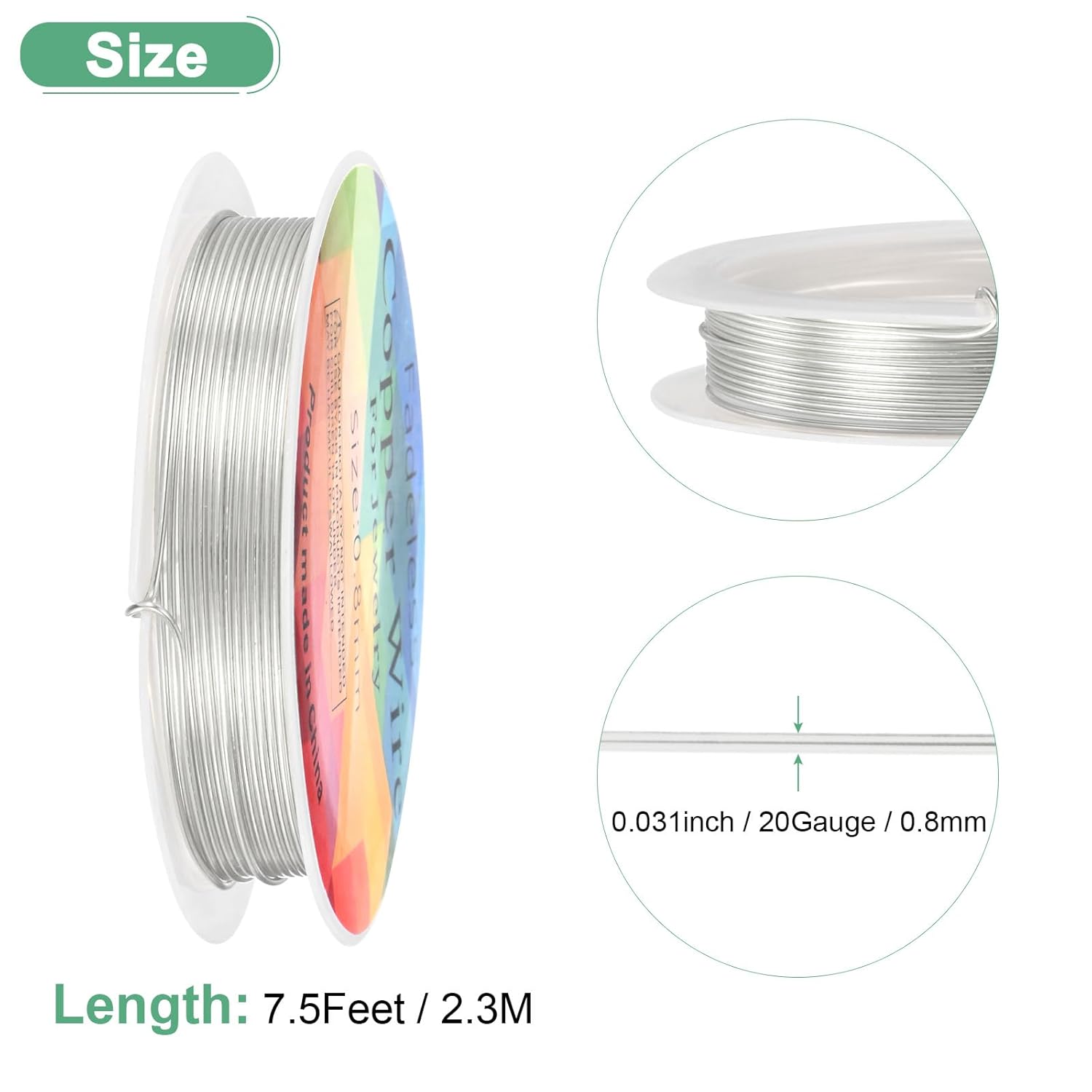 0.8 mm/20 Gauge Copper Wire for Jewelry Making, 7.5FT Copper Beading Craft Wire for Jewelry/Weaving/DIY Crafting/Planting, Color-Retaining [2.3 M, Bright Silver]