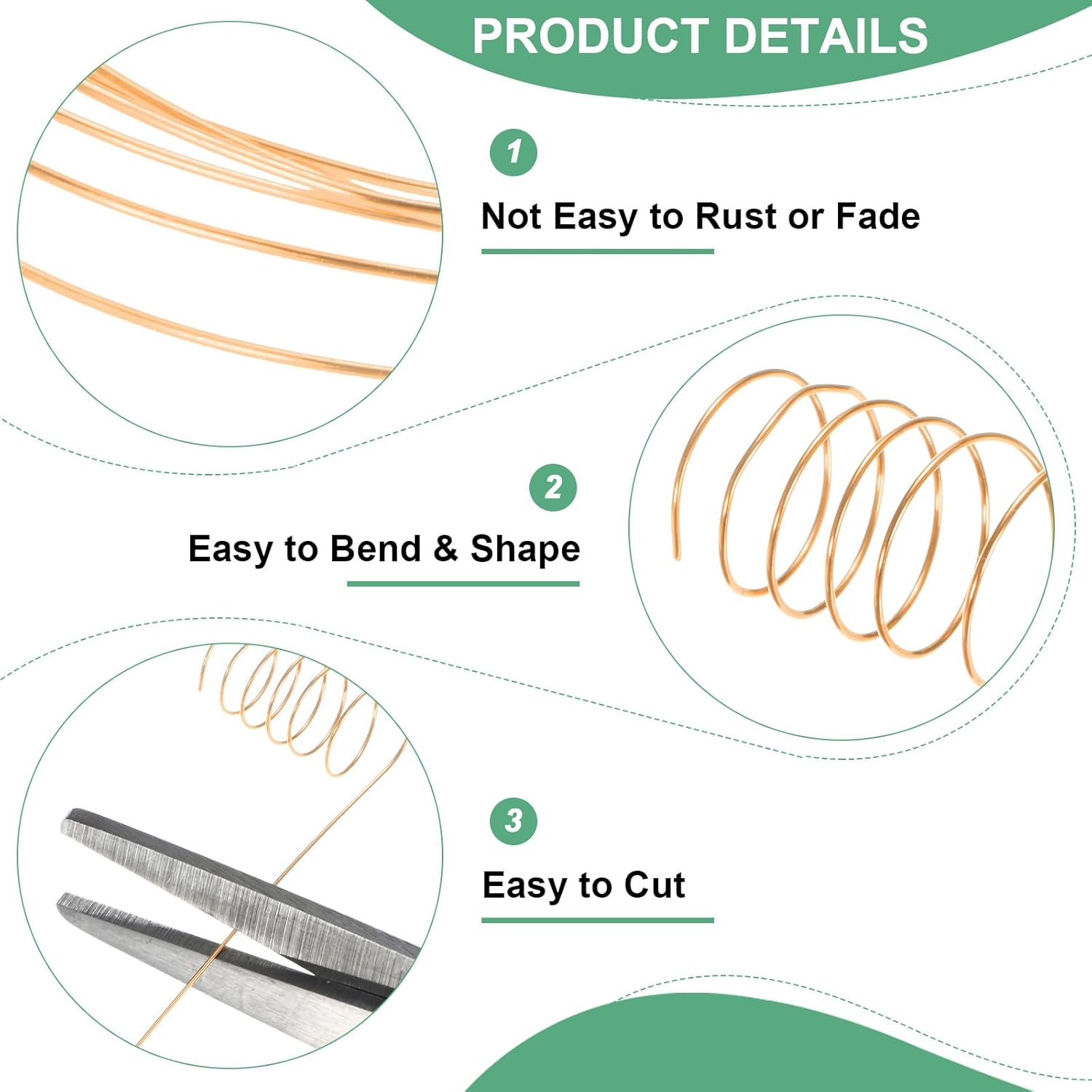 - [Durable Copper Wire] - The copper wire is made of copper with an electroplating process, ensuring a smooth and non-irritating surface that is perfect for delicate jewelry making. Its durability and shine make it a good choice for various projects, and it is not easy to fade or oxidize
